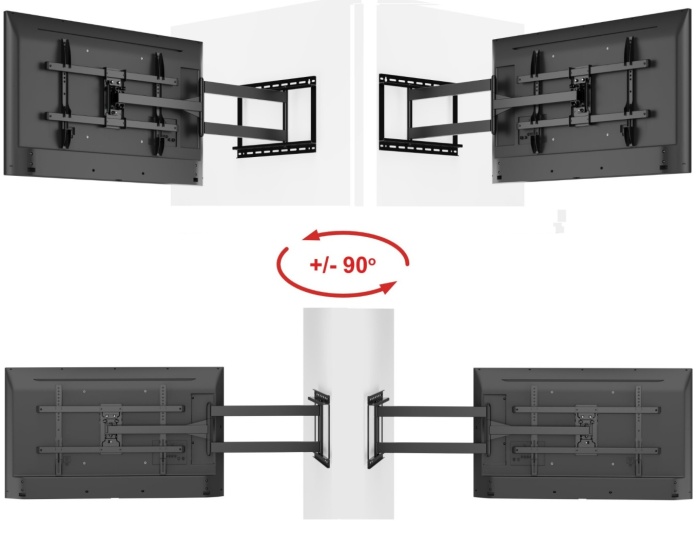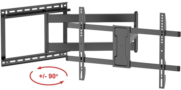 - ➡️pełne 90° czyli uchwyt prostopadle do ściany obrotu osiągniesz dla telewizora o szerokości aż do 195 cm !