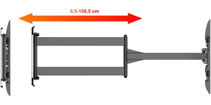 - możliwość ustawienia dowolnej pozycji telewizora zarówno bardzo blisko - 6,5 cm jak i bardzo daleko od ściany - 107 cm