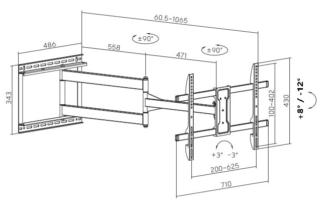 Wieszak o bardzo długim ramieniu do telewizorów LCD/LED 43-80"