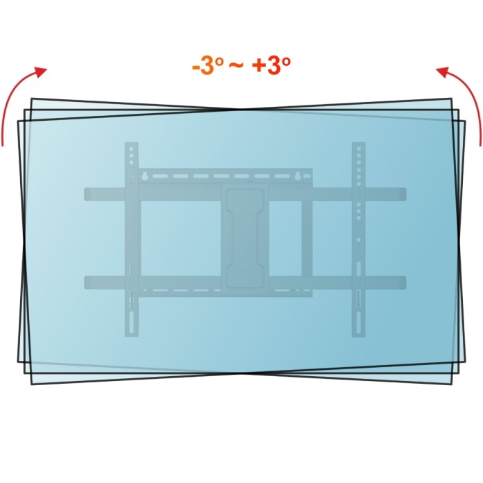 Uchwyt jest przeznaczony dla użytkowników którzy korzystają z jednego ustawienia telewizora. W przypadku kiedy korzystamy z kilku ustawień jednocześnie np. raz telewizor jest przy samej ścianie a innym razem telewizor prostopadle do ściany to nie jesteśmy w stanie wypoziomować telewizora dla obu ustawień jednocześnie. Uchwyt posiada regulację poziomowania poprzez 4 śruby ale za każdą zmianą ustawienia konieczna jest nowa regulacja poziomu. Dlatego uchwyt ten proponujemy dla osób które raz ustawią telewizor i później nie zmieniają jego pozycji.
