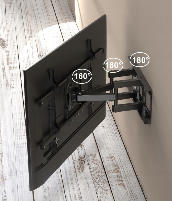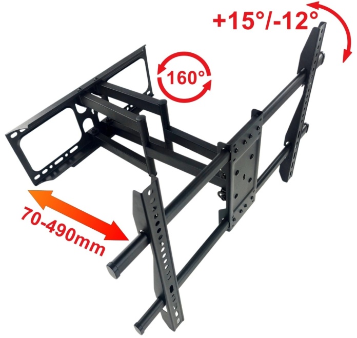 - dzięki ▶️ długim 49 cm podwójnym ramionom telewizor można zainstalować w dowolnej pozycji