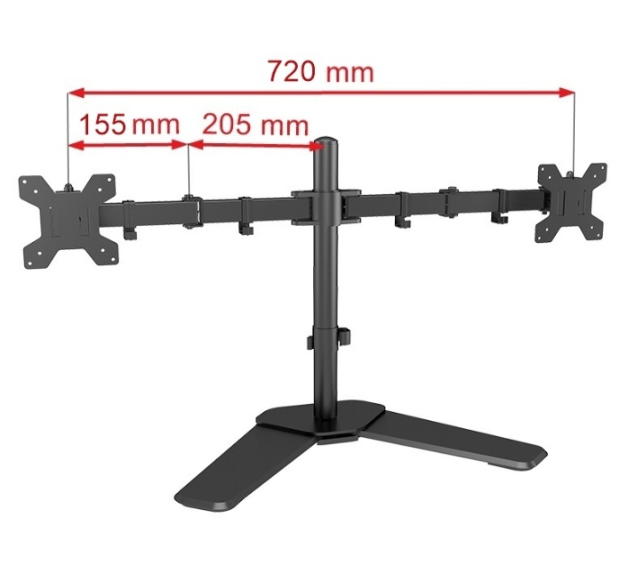 Uchwyt posiada ciężką, solidną stalową podstawę, która zapewnia stabilność monitorów.